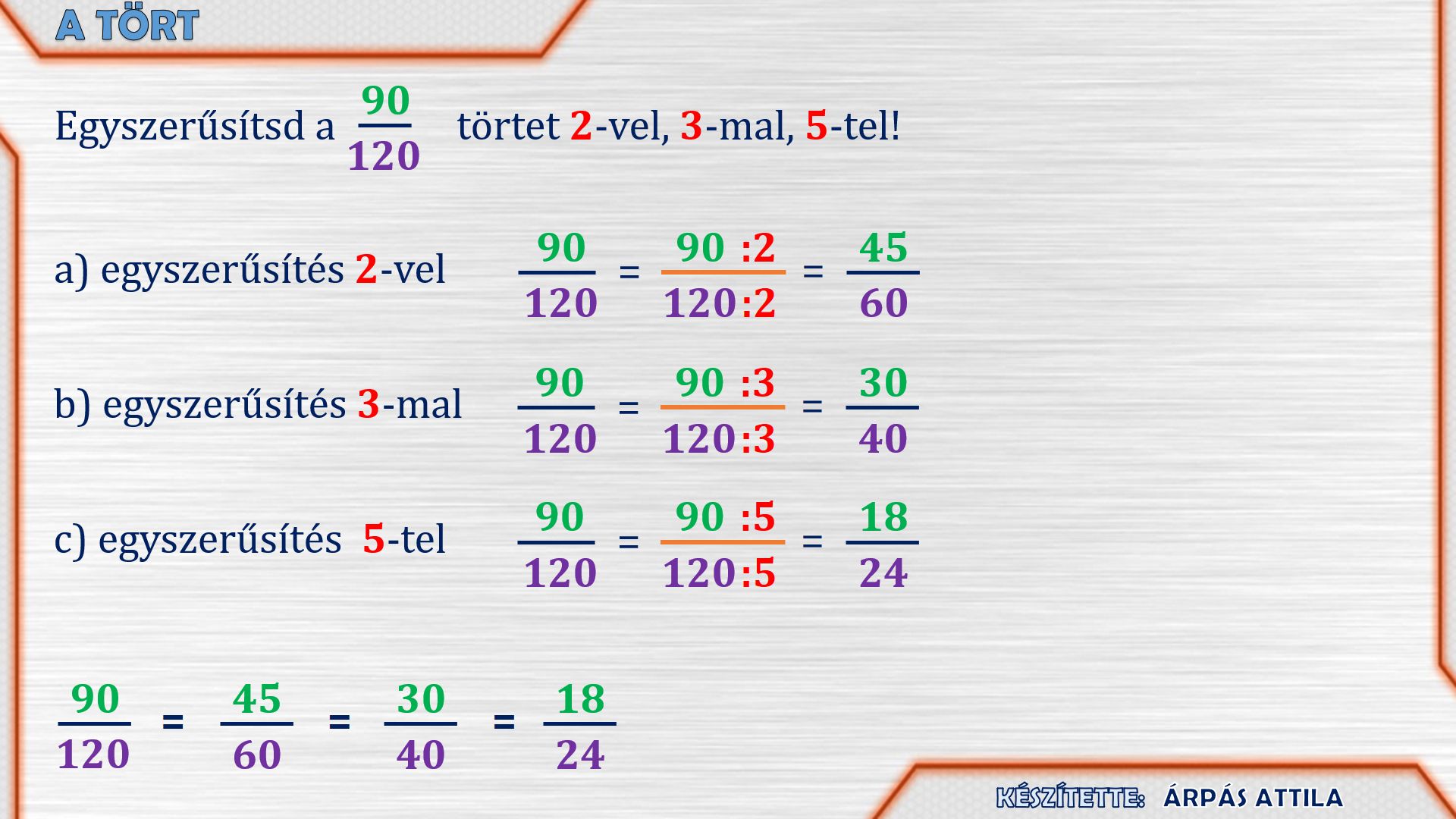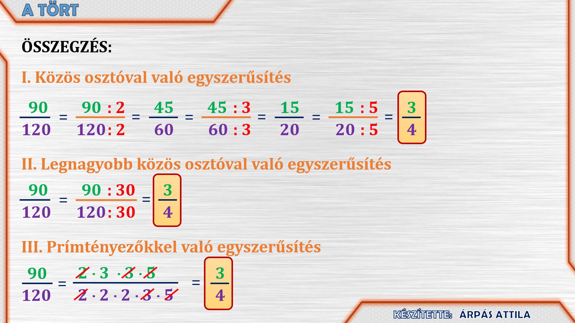 A folytatásban 3 egyszerűsítési módszert tanulunk meg: egyszerűsítés közös osztó, legnagyobb közös osztó és prímtényezők segítségével.