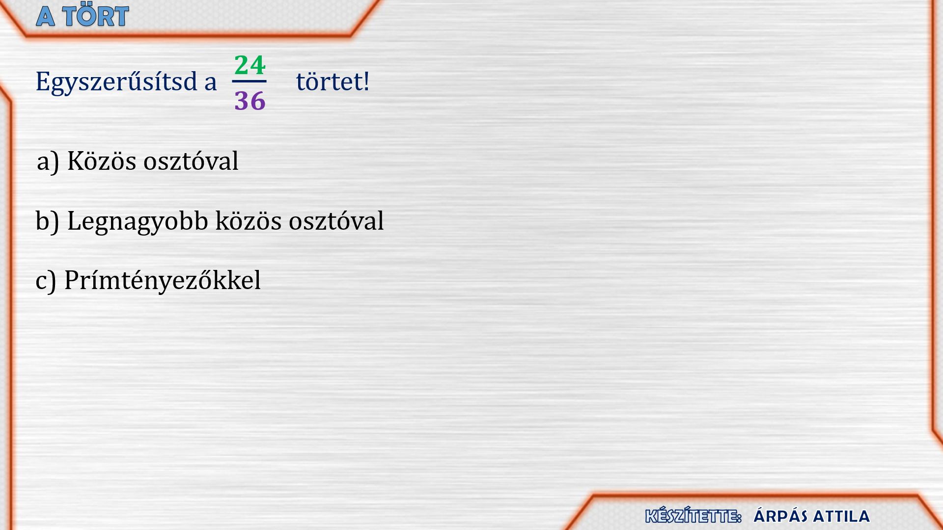 TÖRTEK EGYSZERŰSÍTÉSE - BEVEZETŐ