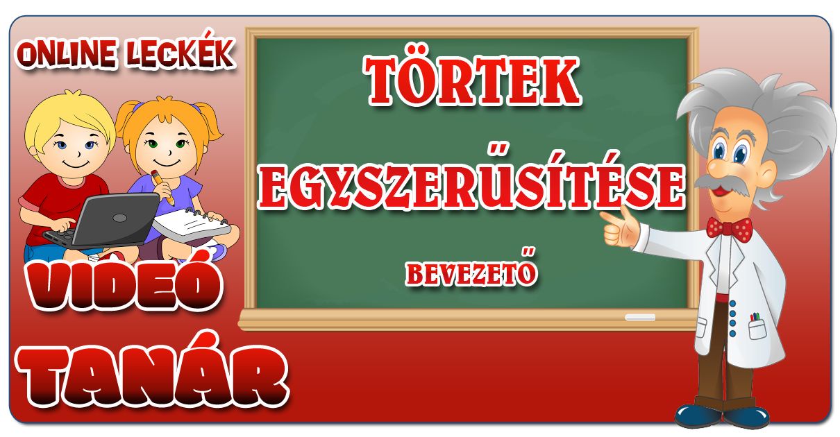 Leckénk bevezető videójában az egyszerűsítés fogalmával ismerkedünk meg. Tört értéke nem változik, ha számlálót és nevezőt elosztjuk ugyanazzal a számmal.