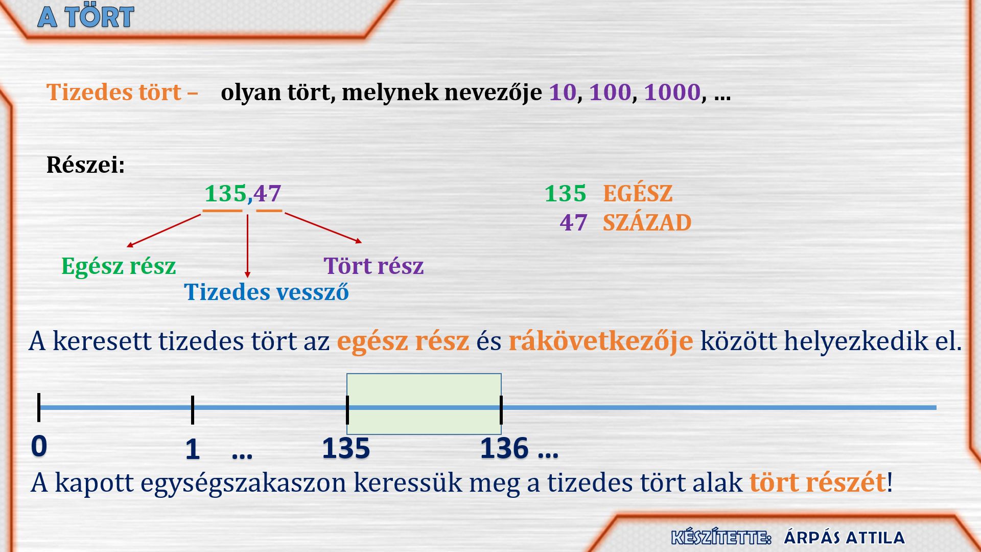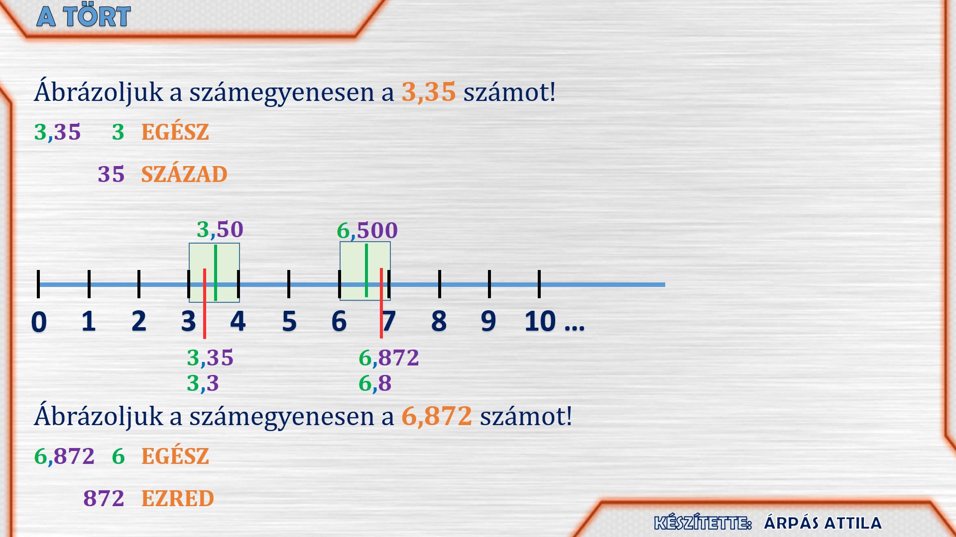 TIZEDES TÖRTEK ÁBRÁZOLÁSA A SZÁMEGYENESEN